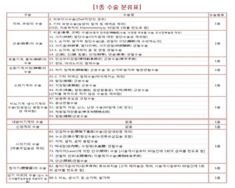 여러분, 안녕하세요. 질병이나 사고로 인해 수술을 받아야 했던 경험이 있거나 현재 진행 중인 분들이 많습니다. 병원에 가기도 무섭지만 수술을 하게 된다면 모두의 마음이 아플 것입니다. 아픈 것도 고통스럽고 수술 비용도 만만치 않다. 우리는 이런 사람들을 위한 보험이 있습니다. 오늘은 농협생명의 입원수술보험에 대해 간략히 소개해드리려고 합니다. 비교적 경미한 질환 수술뿐만 아니라 암, 뇌, 심혈관 질환 등 주요 질환에 대한 수술도 보장한다. 불필요한 요식은 줄이고 보험료는 쉽게 계산하세요(클릭) 그럼 질병으로 인한 수술만 보장하시나요? 당연히 아니지. 부상을 당해 수술을 해도 모든 것을 보장해 드립니다. 그렇다면 특정 보증은 어떻습니까? 첫째, 수술비보험은 상해수술비와 질병수술비를 모두 보장합니다. 둘 중 하나를 사용할 필요는 없으며 둘 다 등록할 수 있습니다. 아프거나 다쳤을 때 보험에 가입할 수 있다면 정말 좋지 않을까요? (보험에 따라 보상받을 수 있는 부상 및 질병의 종류가 다릅니다.) 보험급부는 일시금으로 지급됩니다. 귀하가 받는 수술의 종류에 관계없이 약관에 명시된 것과 동일한 금액을 지불합니다. 하지만 수술 후 후유증이 있다면? 중증 장애로 인해 경제 활동을 하지 못하고 계속해서 보험료를 내고 있다면 큰일 나겠죠? 그런 분들에게는 후유증이 80% 남으면 보험에서 면제된다는 조항이 있습니다. 단, 보장된 보험료는 면제되지 않고 누적 보험료만 지급됩니다. 커버리지가 궁금하다면? 외과 보험은 1에서 5까지 보장합니다. 자세한 내용은 다음과 같습니다. 1형 : 부비동염, 백내장, 요실금, 하지정맥류, 치질, 안검하수 등 2형 : 맹장, 대장용종, 자궁, 난소, 나팔관 혈관수술 등 3형 : 녹내장, 유방절제술 등 4형 : 간, 췌장 혈관외과, 위절제 등 5종 : 뇌외과, 심장외과 등 정말 다양하죠? 단, 보험사마다 상이할 수 있으니 반드시 확인하시기 바랍니다.