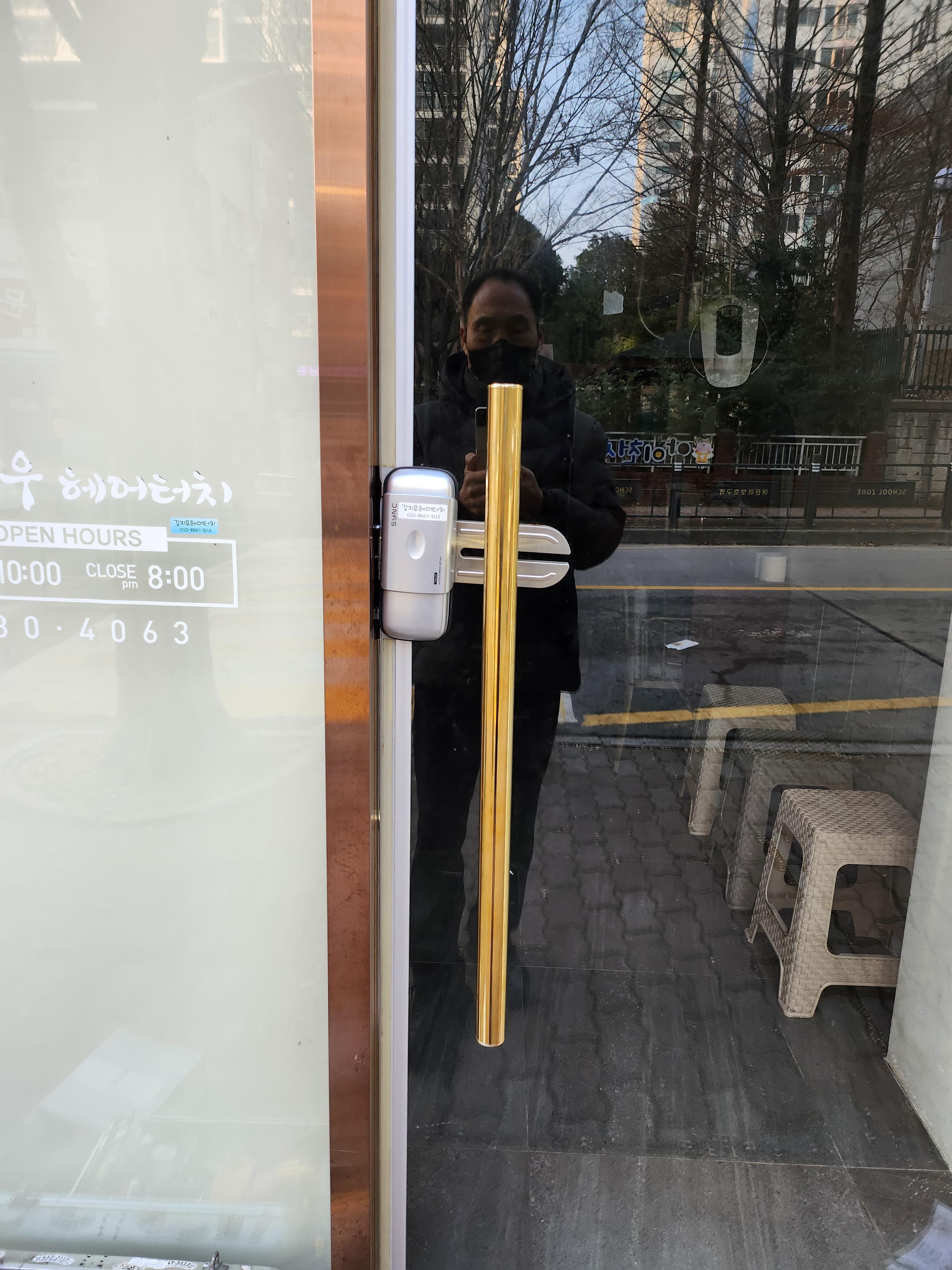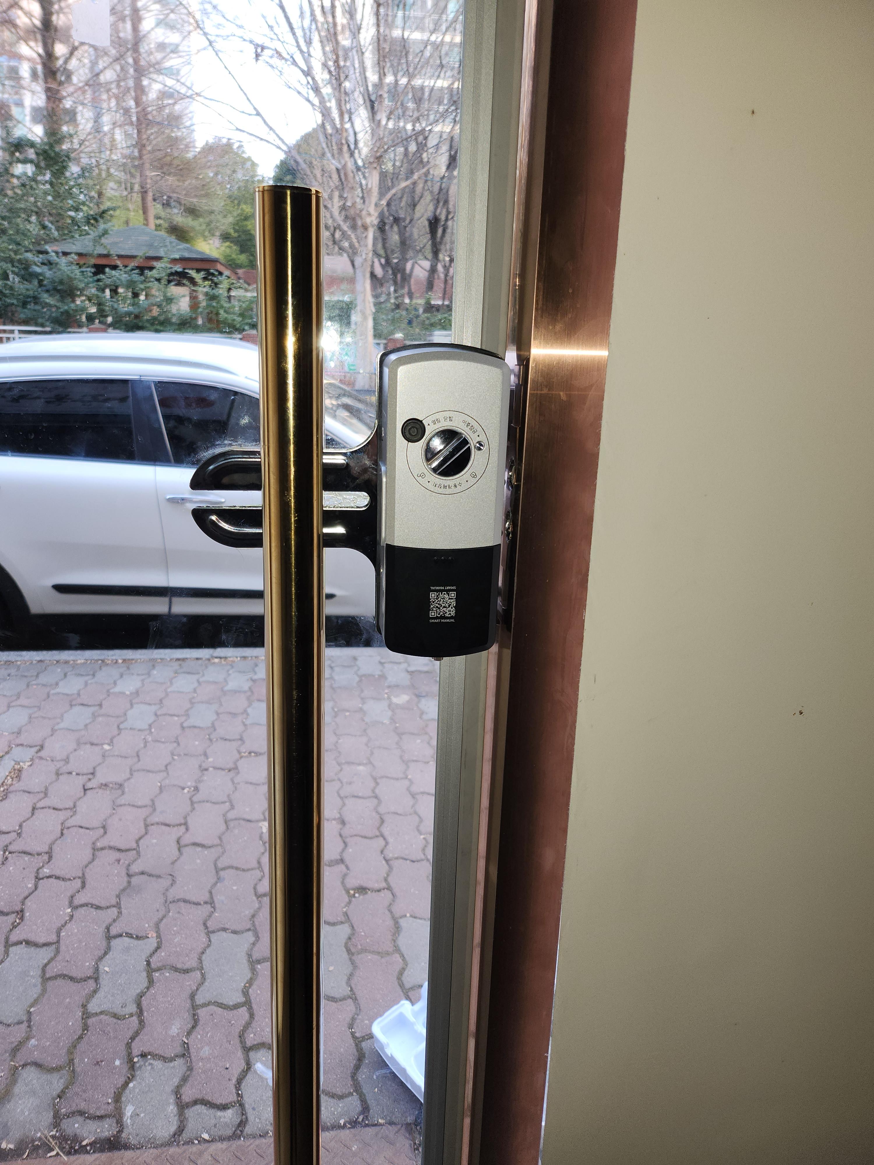 광주 북구 일곡동 상가 유리문에 고장난 디지털도어락을 방문 후 사진입니다.