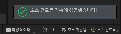 소스 제어에 대한 연결이 성공했다는 알림이 표시되면 성공한 것입니다.